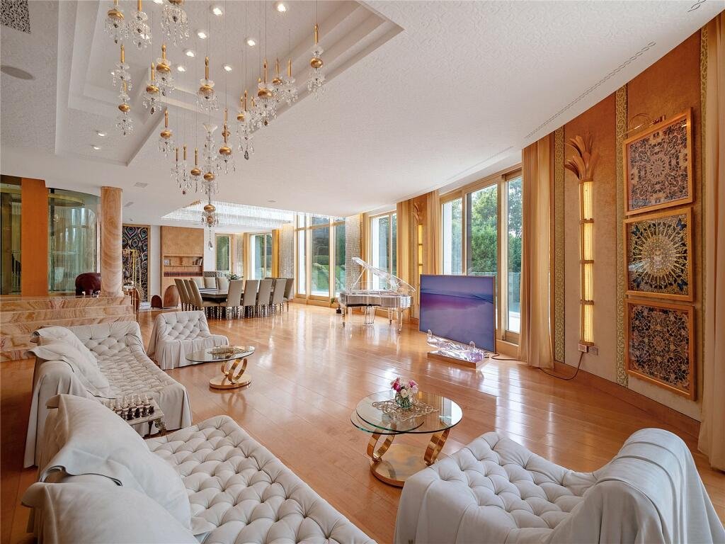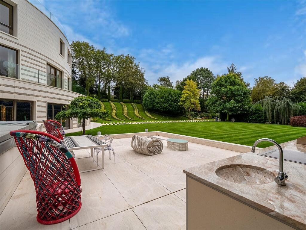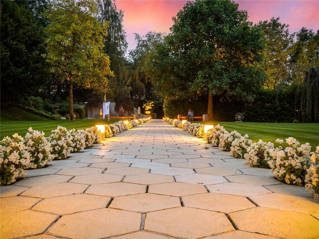 Nestled on a sought-after road in Highgate, this exceptional estate offers a harmonious blend of luxury and tranquility. The main house, predominantly arranged over three floors, features a grand entrance hall with a glass lift, leading to formal sitting and dining rooms that overlook the magnificent grounds. The residence boasts a master suite with an en-suite bathroom, four additional suites each with en-suite facilities, and a top-floor home study offering panoramic views over the garden and Hampstead Heath beyond.